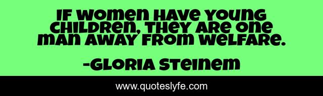 This page presents the quote "If women have young children, they are one man away from welfare.". Author of this quote is Gloria Steinem. This quote is about man, young, children,.