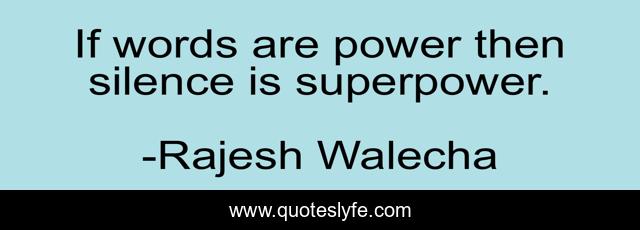This page presents the quote "If words are power then silence is superpower.". Author of this quote is Rajesh Walecha. This quote is about communication, inspirational, enthusiasm,.
