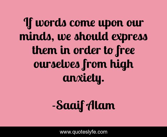 This page presents the quote "If words come upon our minds, we should express them in order to free ourselves from high anxiety.". Author of this quote is Saaif Alam. .