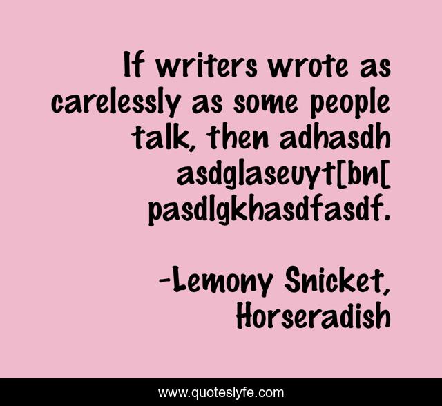 This page presents the quote "If writers wrote as carelessly as some people talk, then adhasdh asdglaseuyt[bn[ pasdlgkhasdfasdf.". Author of this quote is Lemony Snicket, Horseradish. This quote is about talking, writers, humor,.