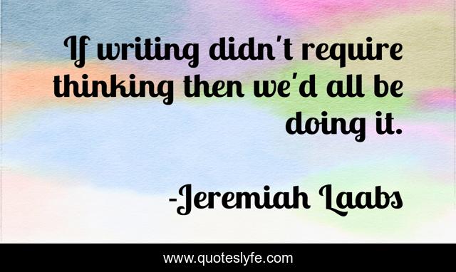 This page presents the quote "If writing didn't require thinking then we'd all be doing it.". Author of this quote is Jeremiah Laabs. This quote is about writing-process, writing,.