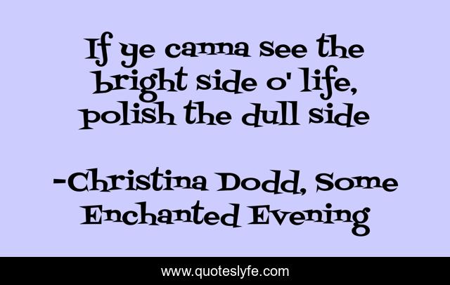 "Christina Dodd, Some Enchanted Evening Quotes." Quoteslyfe.com, 2025. Tue. 09 Dec. 2025. <https://www.quoteslyfe.com/quote/If-ye-canna-see-the-bright-side-40989>.