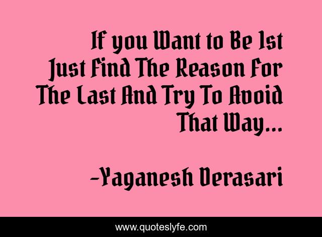 This page presents the quote "If you Want to Be 1st Just Find The Reason For The Last And Try To Avoid That Way...". Author of this quote is Yaganesh Derasari. This quote is about phylosophy, mentality, success, winning,.