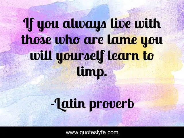 This page presents the quote "If you always live with those who are lame you will yourself learn to limp.". Author of this quote is Latin proverb. .
