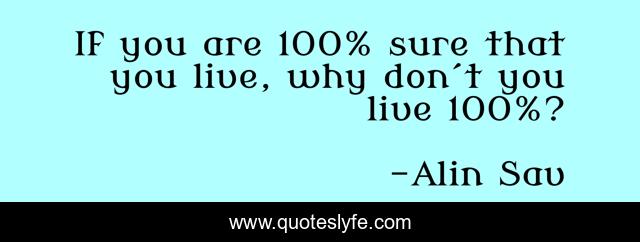 This page presents the quote "If you are 100% sure that you live, why don´t you live 100%?". Author of this quote is Alin Sav. This quote is about enthusiasm, philosophy, inspirational,.