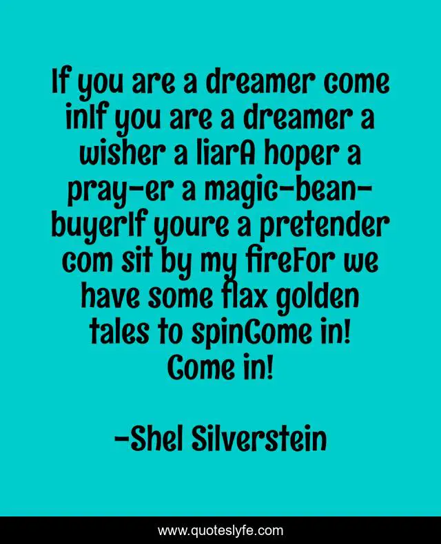 "Shel Silverstein Quotes." Quoteslyfe.com, 2025. Sun. 07 Dec. 2025. <https://www.quoteslyfe.com/quote/If-you-are-a-dreamer-come-inIf-24237>.