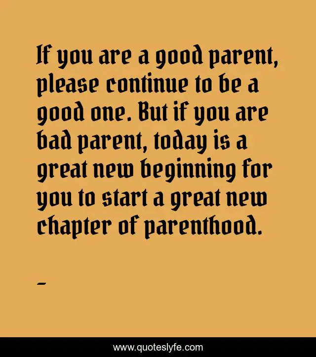 This page presents the quote "If you are a good parent, please continue to be a good one. But if you are bad parent, today is a great new beginning for you to start a great new chapter of parenthood.". Author of this quote is . This quote is about dad, good, parent, edmond-mbiaka, be-a-good-parent, father, parenthood, bad, parents,.