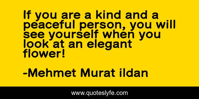 This page presents the quote "If you are a kind and a peaceful person, you will see yourself when you look at an elegant flower!". Author of this quote is Mehmet Murat ildan. This quote is about turkish-aphorisms, kind, flower, mehmet-murat-ildan, ildan-wise-sayings, turkish, ildan-wisdom, kind-people, turkish-sayings,.