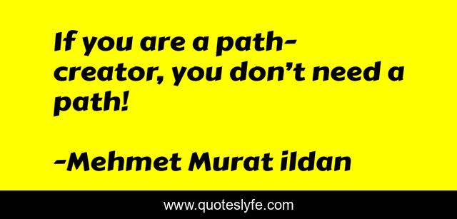 This page presents the quote "If you are a path-creator, you don’t need a path!". Author of this quote is Mehmet Murat ildan. This quote is about paths, mehmet-murat-ildan, ildan-wise-sayings, creator, ildan-wisdom, turkish, turkish-playwrights, turkish-wisdom-words, turkish-writers,.