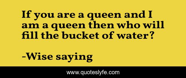 This page presents the quote "If you are a queen and I am a queen then who will fill the bucket of water?". Author of this quote is Wise saying. This quote is about pride, obnoxious,.