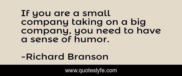 This page presents the quote "If you are a small company taking on a big company, you need to have a sense of humor.". Author of this quote is Richard Branson. This quote is about small, company,.