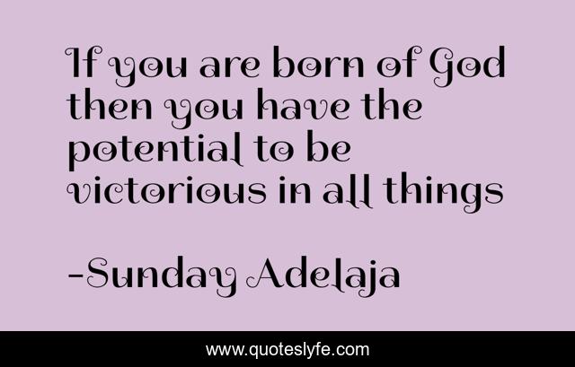 This page presents the quote "If you are born of God then you have the potential to be victorious in all things". Author of this quote is Sunday Adelaja. This quote is about god, born, potential, victorious, things,.