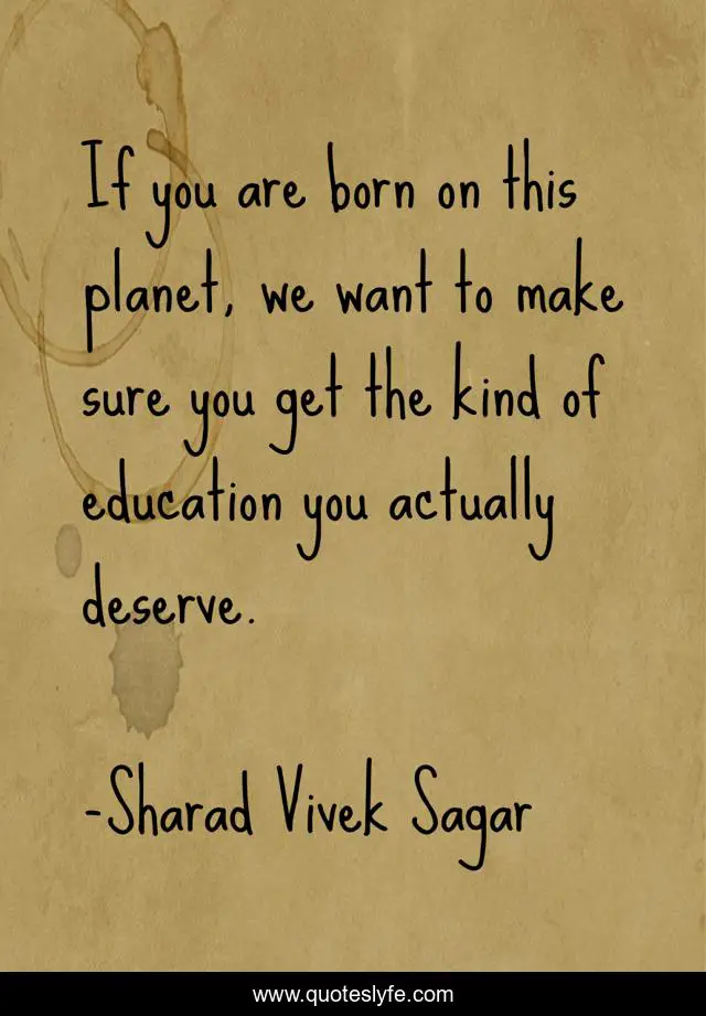 This page presents the quote "If you are born on this planet, we want to make sure you get the kind of education you actually deserve.". Author of this quote is Sharad Vivek Sagar. This quote is about life, sharad-vivek-sagar, students, deserve, motivation, planet, sharad-sagar, education, children,.