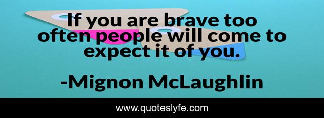 This page presents the quote "If you are brave too often people will come to expect it of you.". Author of this quote is Mignon McLaughlin. .