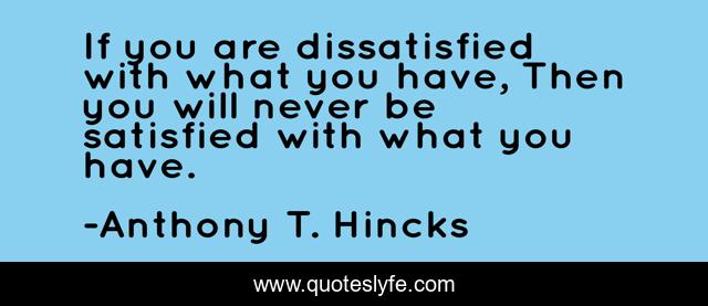 This page presents the quote "If you are dissatisfied with what you have, Then you will never be satisfied with what you have.". Author of this quote is Anthony T. Hincks. This quote is about hae, don-t-have, satisfied, materialism,.