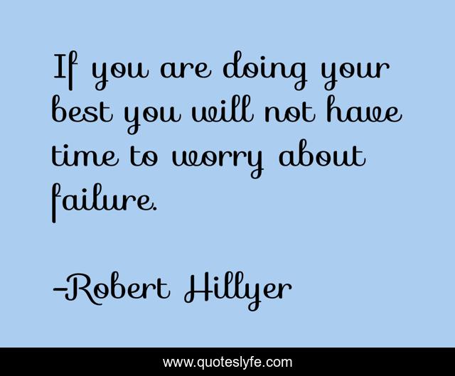 This page presents the quote "If you are doing your best you will not have time to worry about failure.". Author of this quote is Robert Hillyer. .