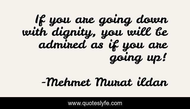 This page presents the quote "If you are going down with dignity, you will be admired as if you are going up!". Author of this quote is Mehmet Murat ildan. This quote is about dignity, admiration, go-down, going-down, turkish, going-up, turkish-writers, turkish-literature, mehmet-murat-ildan,.