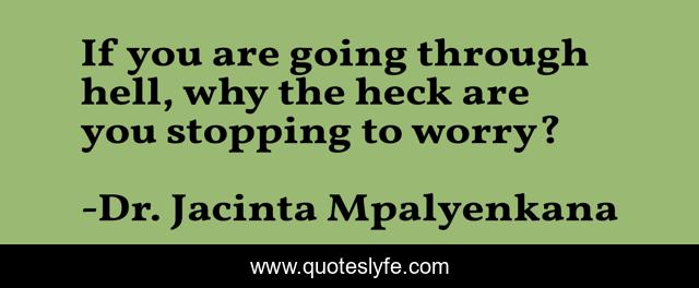 This page presents the quote "If you are going through hell, why the heck are you stopping to worry?". Author of this quote is Dr. Jacinta Mpalyenkana. This quote is about life-inspirational, mind-power, life-lessons,.