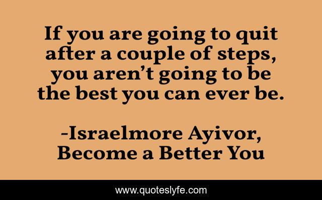 This page presents the quote "If you are going to quit after a couple of steps, you aren’t going to be the best you can ever be.". Author of this quote is Israelmore Ayivor, Become a Better You. This quote is about inspirations, actions, optimistic, never-quit, best, quit, food-for-thought, end, positive,.