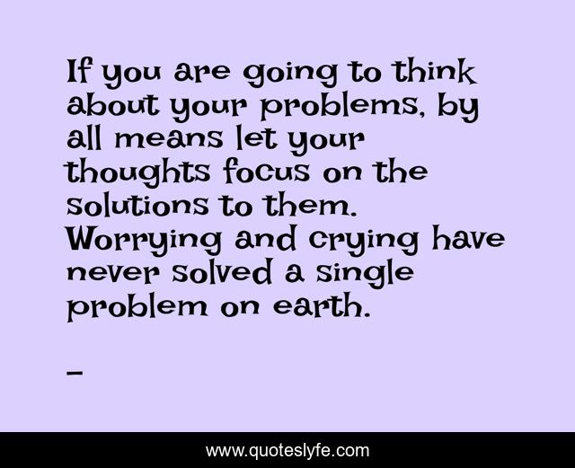 If you are going to think about your problems, by all means let your thoughts focus on the solutions to them. Worrying and crying have never solved a single problem on earth.