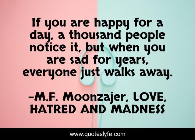 "M.F. Moonzajer, LOVE, HATRED AND MADNESS Quotes." Quoteslyfe.com, 2025. Fri. 05 Dec. 2025. <https://www.quoteslyfe.com/quote/If-you-are-happy-for-a-day-124361>.