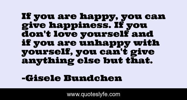 This page presents the quote "If you are happy, you can give happiness. If you don't love yourself and if you are unhappy with yourself, you can't give anything else but that.". Author of this quote is Gisele Bundchen. This quote is about life, love, giving, yourself, happiness, inspirational, enthusiasm, affection, happy,.