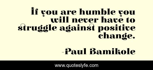 This page presents the quote "If you are humble you will never have to struggle against positive change.". Author of this quote is Paul Bamikole. This quote is about struggle, change, humility,.