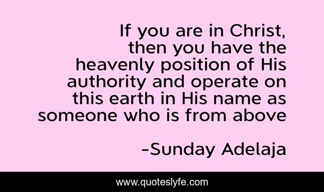 This page presents the quote "If you are in Christ, then you have the heavenly position of His authority and operate on this earth in His name as someone who is from above". Author of this quote is Sunday Adelaja. This quote is about prosperity, someone, wealth, money, riches, possible, authority, name, earth,.