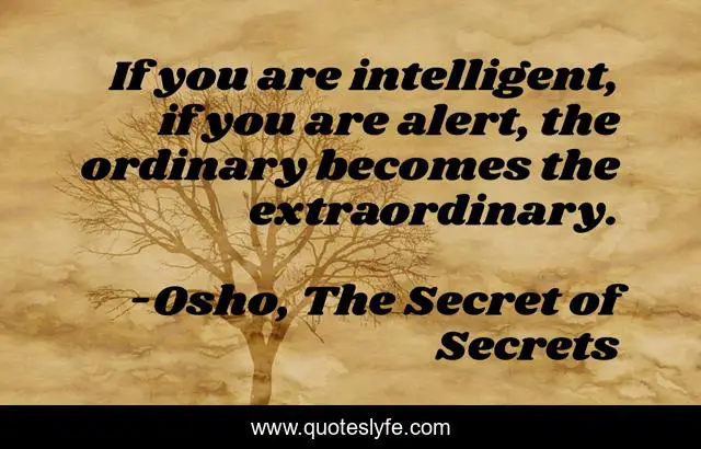 This page presents the quote "If you are intelligent, if you are alert, the ordinary becomes the extraordinary.". Author of this quote is Osho, The Secret of Secrets. This quote is about extraordinary, ordinary, alertness, intelligence,.