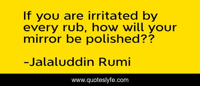 This page presents the quote "If you are irritated by every rub, how will your mirror be polished??". Author of this quote is Jalaluddin Rumi. This quote is about patience, acceptance, growth,.