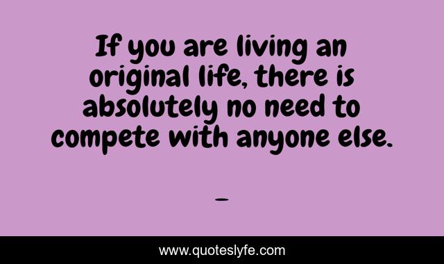 This page presents the quote "If you are living an original life, there is absolutely no need to compete with anyone else.". Author of this quote is . This quote is about competing-with-others, competing-with-someone-else, living-a-original-life, edmond-mbiaka, your-original-self,.