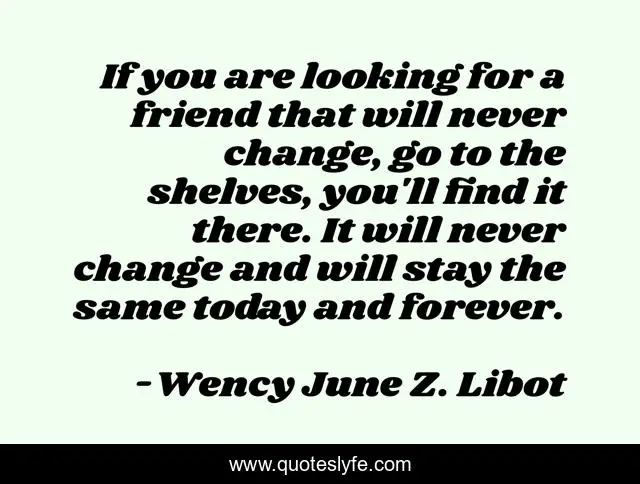 If you are looking for a friend that will never change, go to the shelves, you'll find it there. It will never change and will stay the same today and forever.