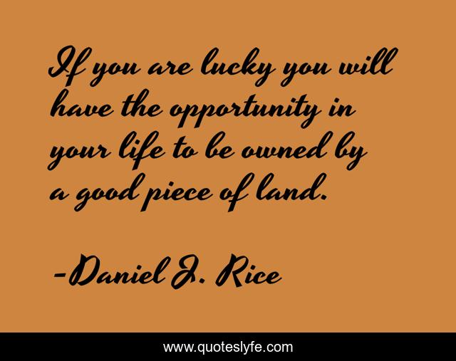 This page presents the quote "If you are lucky you will have the opportunity in your life to be owned by a good piece of land.". Author of this quote is Daniel J. Rice. This quote is about awake-in-the-world, wildlife, land, landowner, nature, environment, opportunity, luck,.