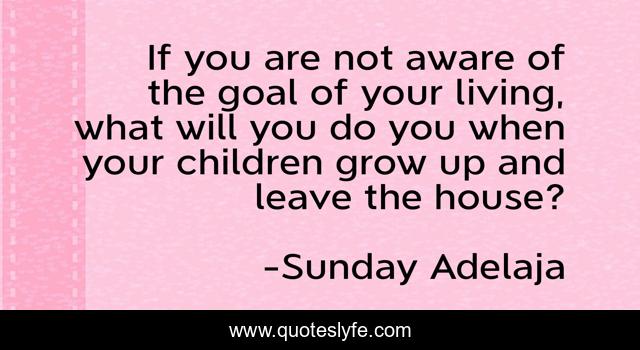 This page presents the quote "If you are not aware of the goal of your living, what will you do you when your children grow up and leave the house?". Author of this quote is Sunday Adelaja. This quote is about goal, family, calling, marriage, purpose, children,.