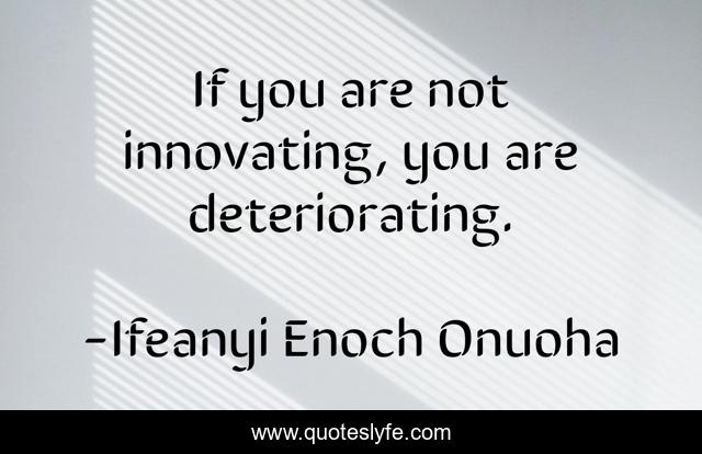 This page presents the quote "If you are not innovating, you are deteriorating.". Author of this quote is Ifeanyi Enoch Onuoha. This quote is about life, quote, wisdom, ifeanyi-enoch-onuoha, innovation, inspiration,.