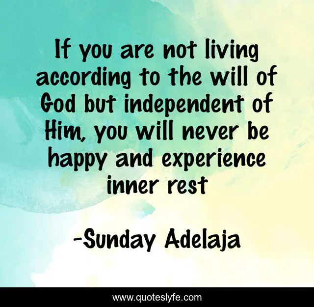 This page presents the quote "If you are not living according to the will of God but independent of Him, you will never be happy and experience inner rest". Author of this quote is Sunday Adelaja. This quote is about independent, living, god, according, experience, calling, purpose, rest, happy,.