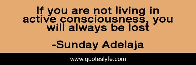 This page presents the quote "If you are not living in active consciousness, you will always be lost". Author of this quote is Sunday Adelaja. This quote is about love, pragmatic, consciousness, people, money, principles, selflessness, employment, impact,.