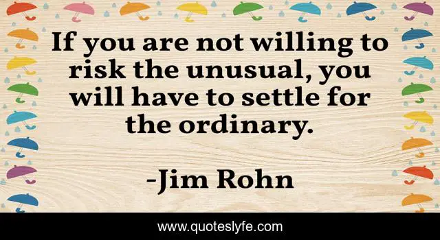 This page presents the quote "If you are not willing to risk the unusual, you will have to settle for the ordinary.". Author of this quote is Jim Rohn. This quote is about settle, risk,.