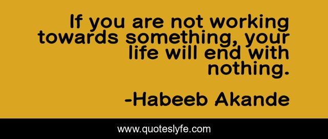 This page presents the quote "If you are not working towards something, your life will end with nothing.". Author of this quote is Habeeb Akande. This quote is about life, goal, hard-work, positive, motivational, confidence, work-ethic, optimistic, inspirational,.