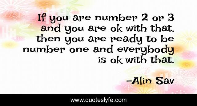 This page presents the quote "If you are number 2 or 3 and you are ok with that, then you are ready to be number one and everybody is ok with that.". Author of this quote is Alin Sav. .