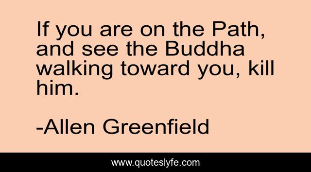 This page presents the quote "If you are on the Path, and see the Buddha walking toward you, kill him.". Author of this quote is Allen Greenfield. .