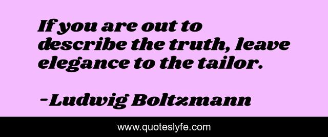 This page presents the quote "If you are out to describe the truth, leave elegance to the tailor.". Author of this quote is Ludwig Boltzmann. This quote is about misattributed-to-einstein, simplicity, elegance, truth,.