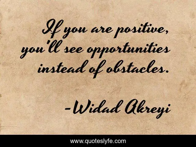 This page presents the quote "If you are positive, you'll see opportunities instead of obstacles.". Author of this quote is Widad Akreyi. This quote is about enthusiasm, inspirational, positive-thinking,.