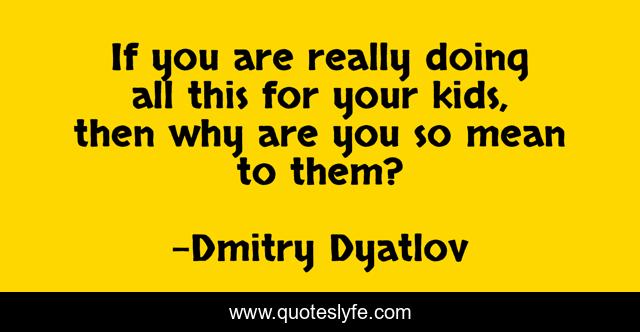 This page presents the quote "If you are really doing all this for your kids, then why are you so mean to them?". Author of this quote is Dmitry Dyatlov. This quote is about child-abuse, parenting, family,.