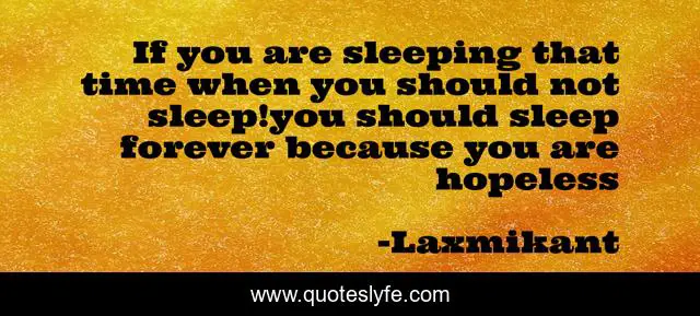 This page presents the quote "If you are sleeping that time when you should not sleep!you should sleep forever because you are hopeless". Author of this quote is Laxmikant. This quote is about hardwork, passion,.