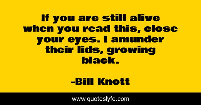 This page presents the quote "If you are still alive when you read this, close your eyes. I amunder their lids, growing black.". Author of this quote is Bill Knott. This quote is about poem, death, love, darkness, affection,.