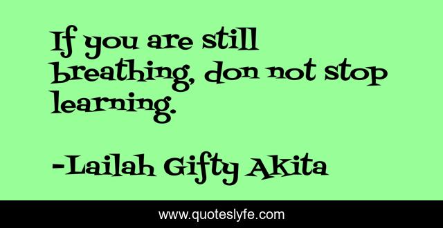 This page presents the quote "If you are still breathing, don not stop learning.". Author of this quote is Lailah Gifty Akita. This quote is about life, graduate-school, learning, personal-development, education, seek,.