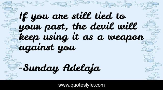 This page presents the quote "If you are still tied to your past, the devil will keep using it as a weapon against you". Author of this quote is Sunday Adelaja. This quote is about purpose, calling-fulfillment, life, goals,.