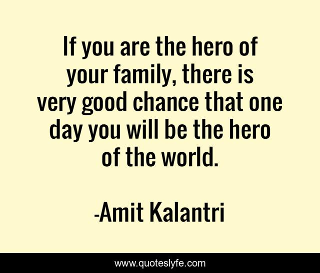 If you are the hero of your family, there is very good chance that one day you will be the hero of the world.