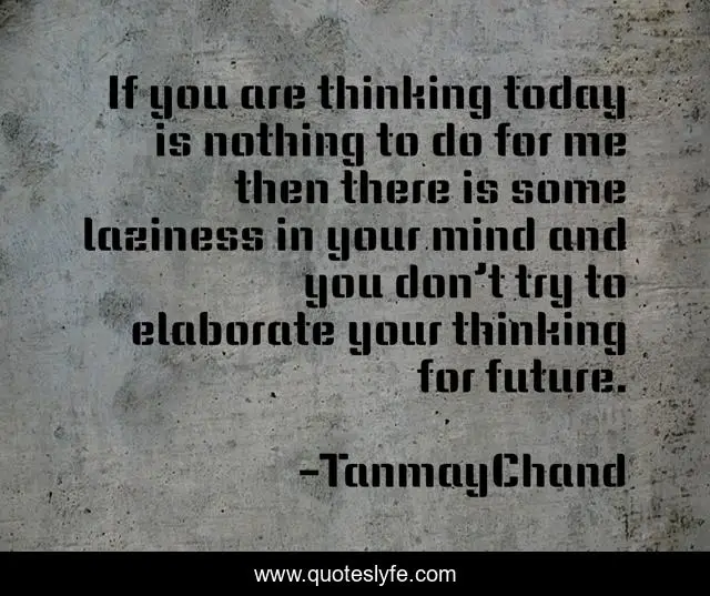 This page presents the quote "If you are thinking today is nothing to do for me then there is some laziness in your mind and you don’t try to elaborate your thinking for future.". Author of this quote is TanmayChand. .